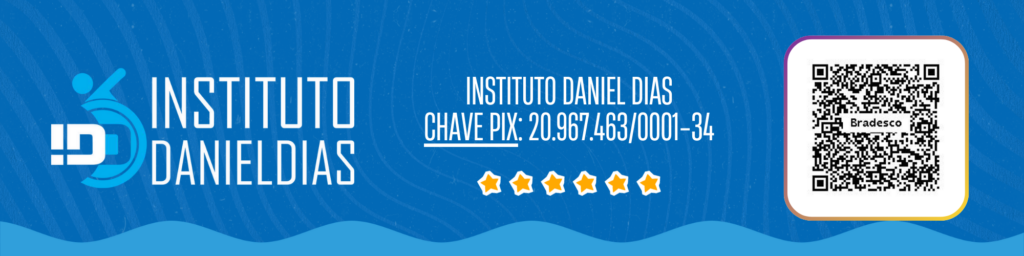 Além das parcerias institucionais ao projeto Nadando com Daniel Dias, o Instituto Daniel Dias também conta com o apoio de pessoas físicas que desejam contribuir diretamente com a transformação de vidas por meio do esporte. Doações individuais podem ser realizadas de forma simples e segura via Pix, utilizando o QR Code disponível abaixo. Cada contribuição ajuda a garantir mais oportunidades de acesso à natação e socialização para crianças e jovens com deficiência, fortalecendo ações de inclusão, desenvolvimento e cidadania.